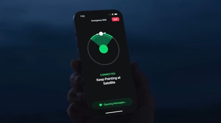 وتقتصر ميزات الأقمار الصناعية الحالية من أبل في طرازات iPhone 14 والأحدث على ميزة الطوارئ SOS، وتطبيقات تحديد الموقع (Find My) والرسائل، والمساعدة على الطريق. وتتطلب هذه الميزات أن يكون لديك رؤية واضحة للسماء للاتصال المباشر بالأقمار الصناعية.