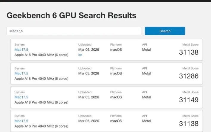 ولن تبدأ أبل في تسليم حاسوبها الجديد حتى يوم 11 مارس الجاري، وذلك بعد الإعلان عنه في حدث رسمي يوم 4 مارس. ويتوفر الجهاز الذي يأتي بمقاس 13 بوصة للطلب المسبق بسعر 599 دولاراً عبر منصات خارجية مثل أمازون، وفي انتظار المراجعات المستقلة، قدمت المنصات نظرة مبكرة على الأداء المتوقع لأول حاسوب محمول يعمل بمعالج A18 Pro في المهام الثقيلة.