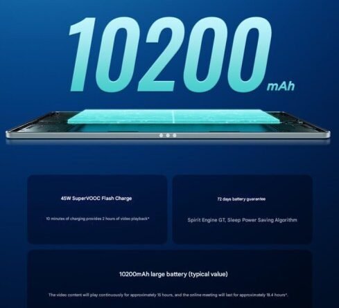 ويدعم الجهاز الجديد تقنية الشحن السلكي السريع بقوة 45 واط لضمان إعادة شحن البطارية بسرعة عند الحاجة. وستكمل الشركة هذه البطارية وتقنية الشحن بمعالج Snapdragon 8s Gen 4 القوي ليكون نداً قوياً لجهاز شاومي Pad 8، مع تجاوز الأداء الذي يقدمه حاسوب سامسونج جالاكسي Tab S11 الرائد، مما يضع هذا الجهاز في مكانة متقدمة ضمن المنافسة الشرسة في سوق الأجهزة اللوحية العاملة بنظام أندرويد.