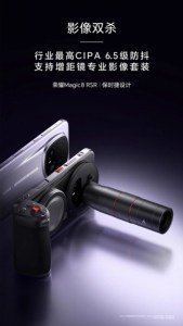 وأعلنت Honor عبر منصة Weibo دعم هاتف Magic8 RSR Porsche Design لعدسة تكبير إضافية يتم تركيبها ضمن مجموعة ملحقات الكاميرا الخاصة بالجهاز. وكشفت الصورة الرسمية التي نشرتها الشركة أن هذه العدسة ستعزز مستوى التقريب الأصلي بمعدل يصل إلى 2.35x.
